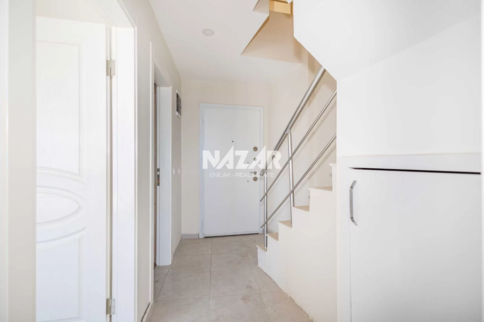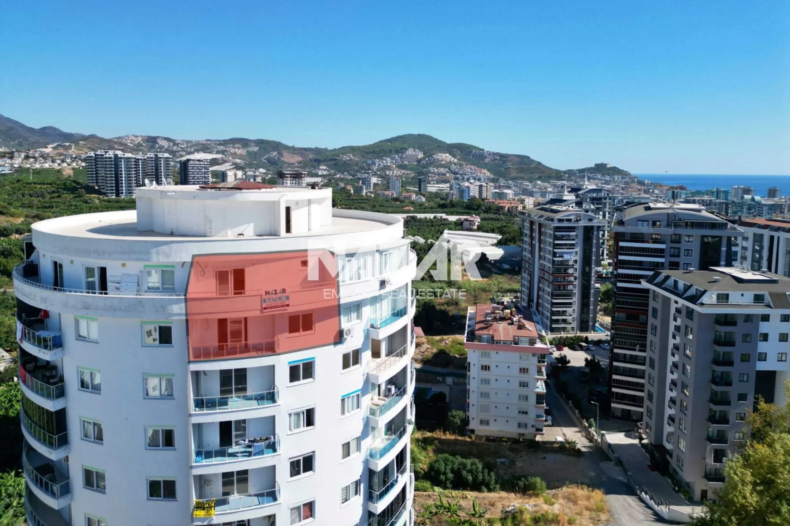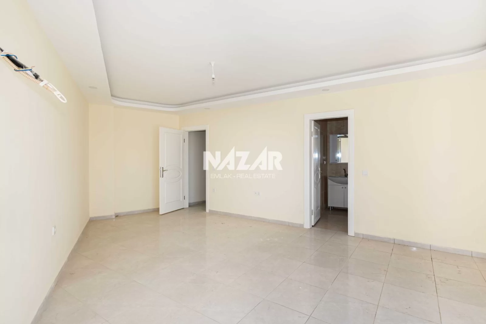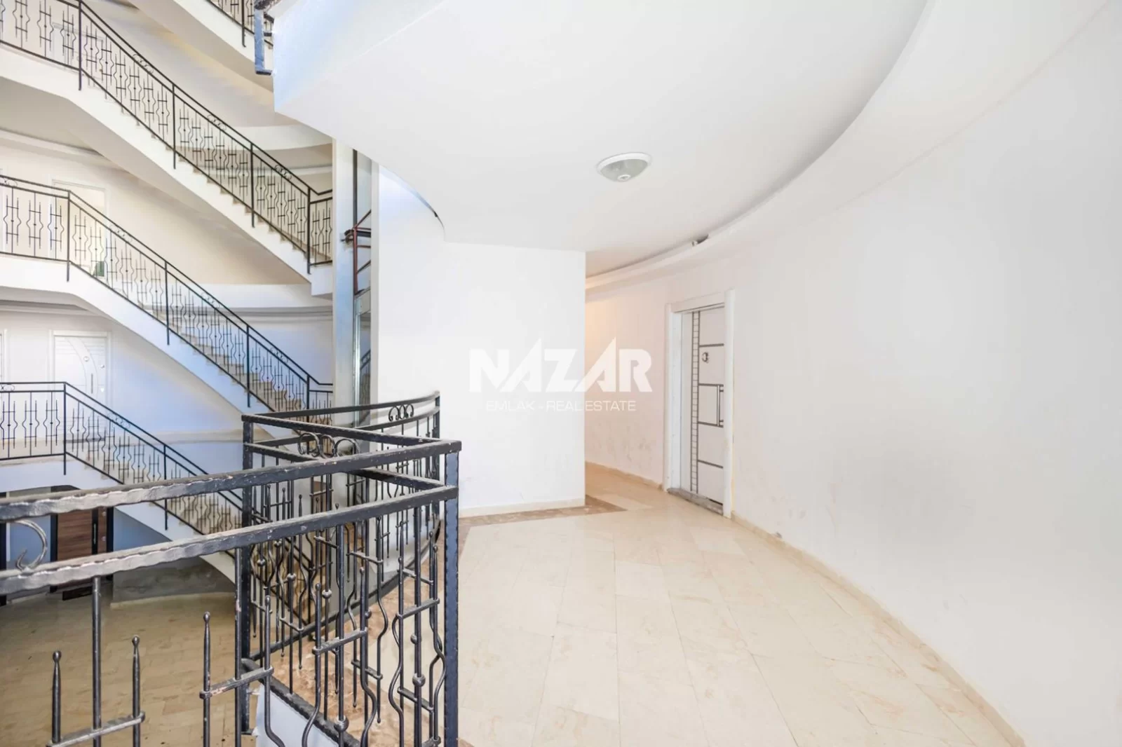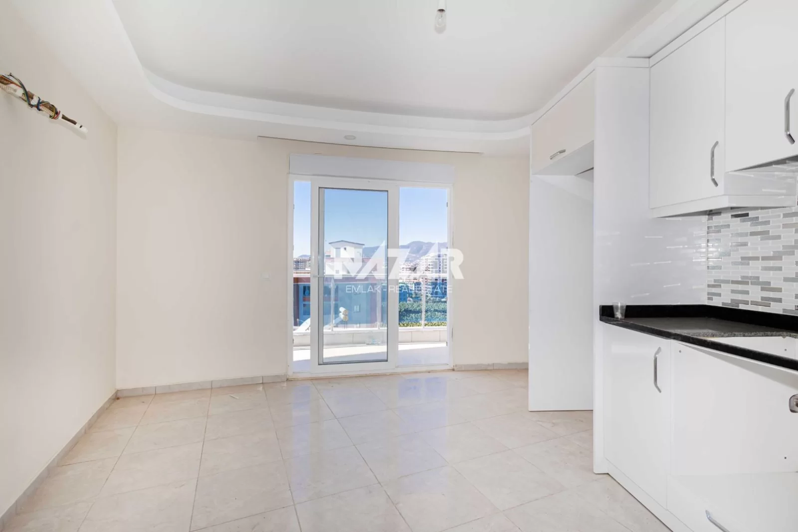 Die Anlage verfügt über soziale Einrichtungen wie einen Außenpool, einen offenen Parkplatz und einen Landschaftsgarten. Außerdem gibt es einen Aufzug, einen Generator, einen Hausmeister, eine Sauna und einen Fitnessraum. Das Meer ist nur 900 Meter entfernt. Diese Wohnung können Sie über Nazar Emlak erreichen.