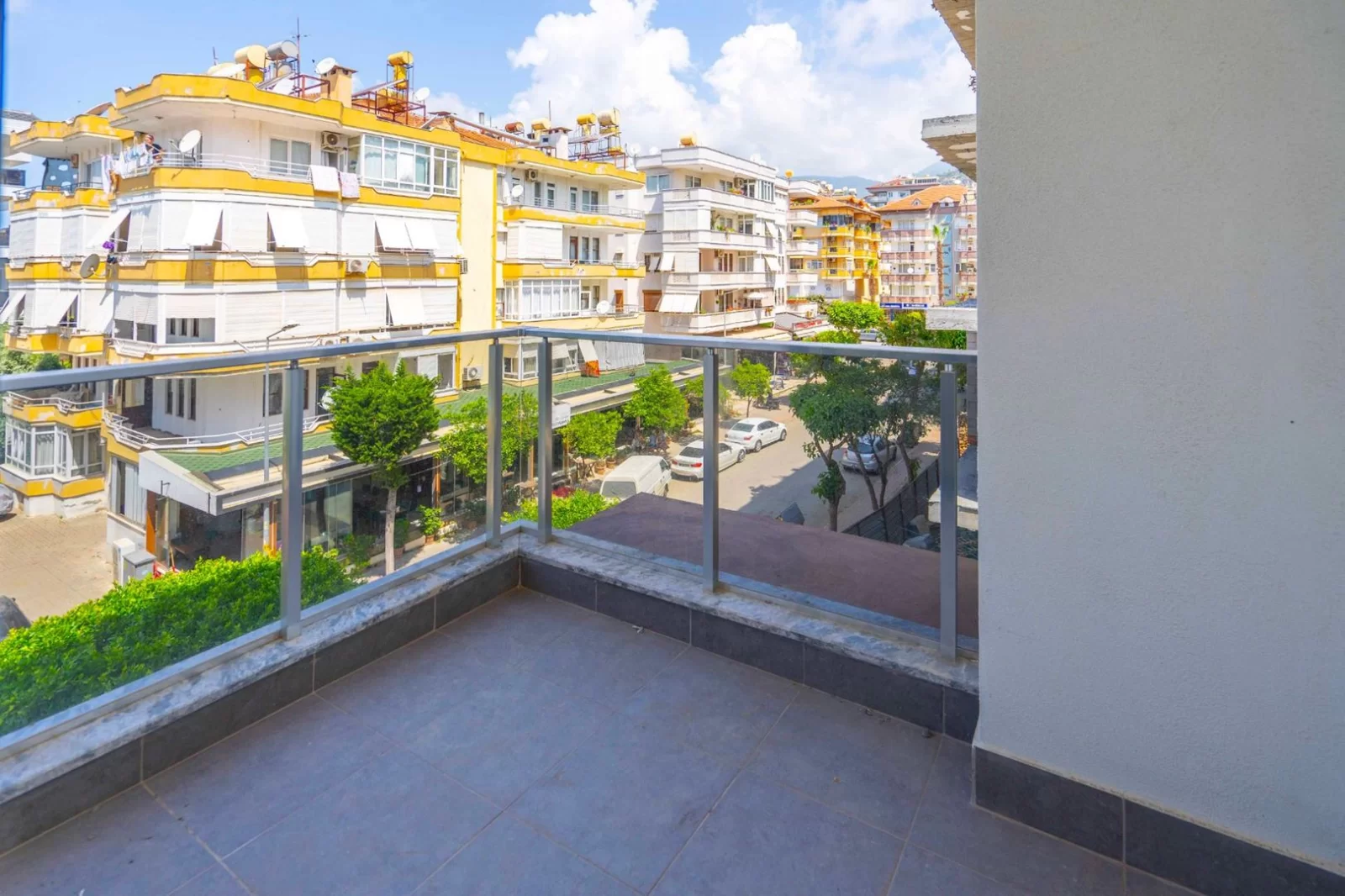 2Unsere Mietwohnung befindet sich in Güllerpınarı, einem der zentralen Stadtteile von Alanya. Sie hat 2 Zimmer und 1 Wohnzimmer auf einer Fläche von 90 m², ausgestattet mit 2 Bädern/WC und 1 Balkon. Die Wohnung ist nach Norden und Westen ausgerichtet. Unsere Wohnung mit Aufzug befindet sich im zweiten Stock des vierstöckigen Gebäudes.
