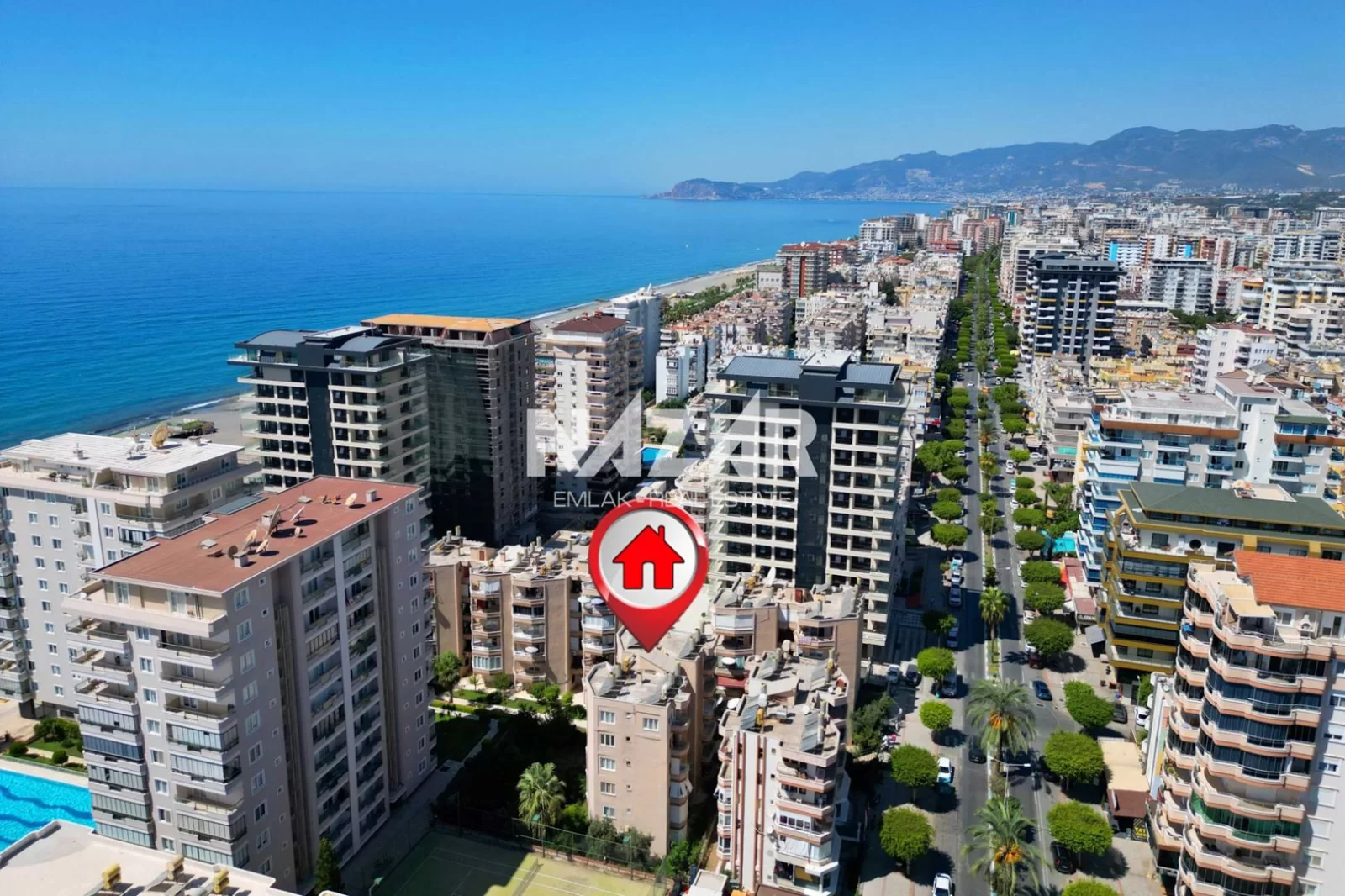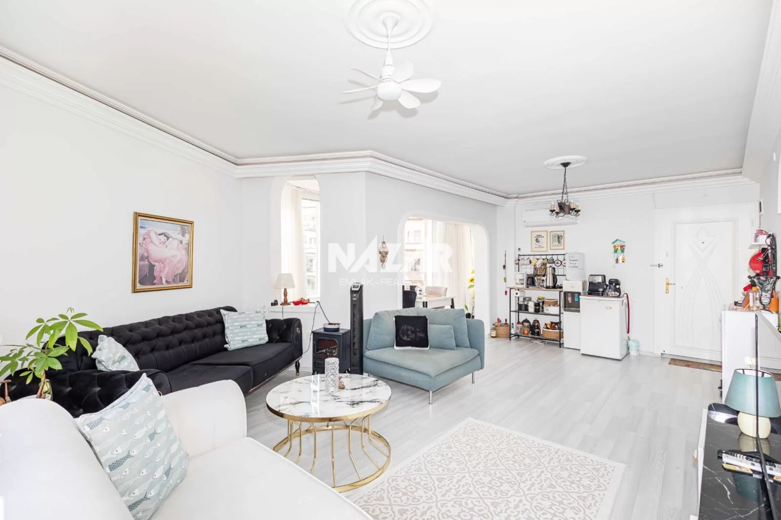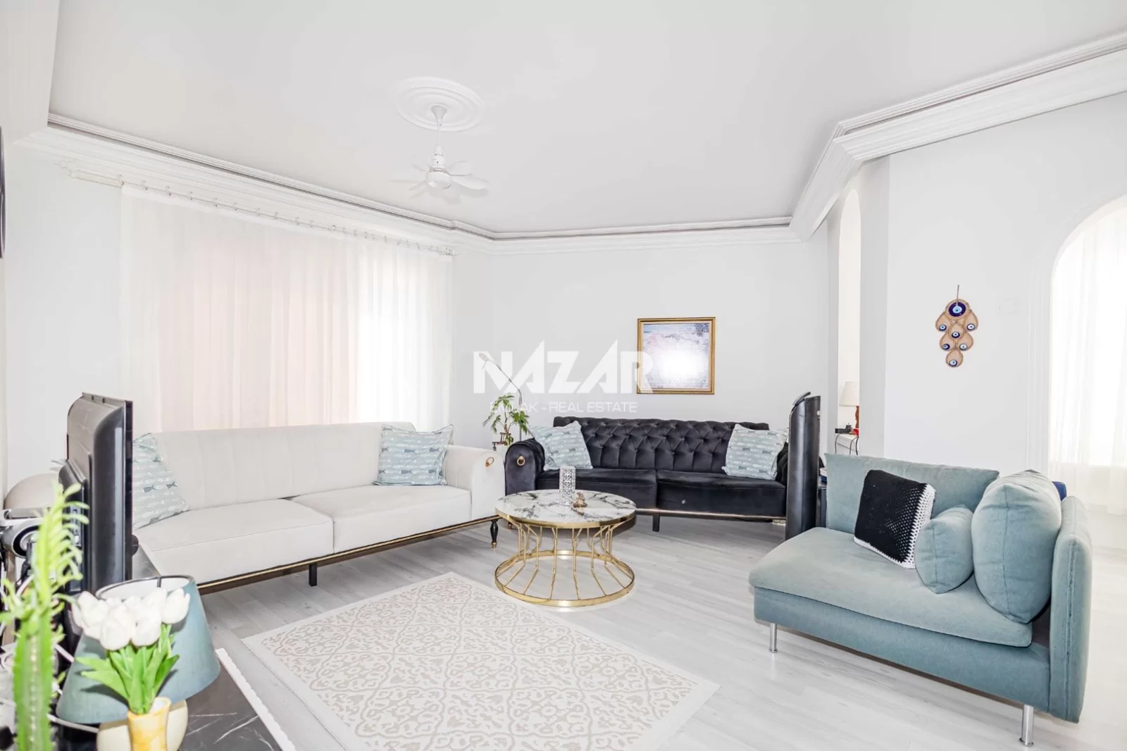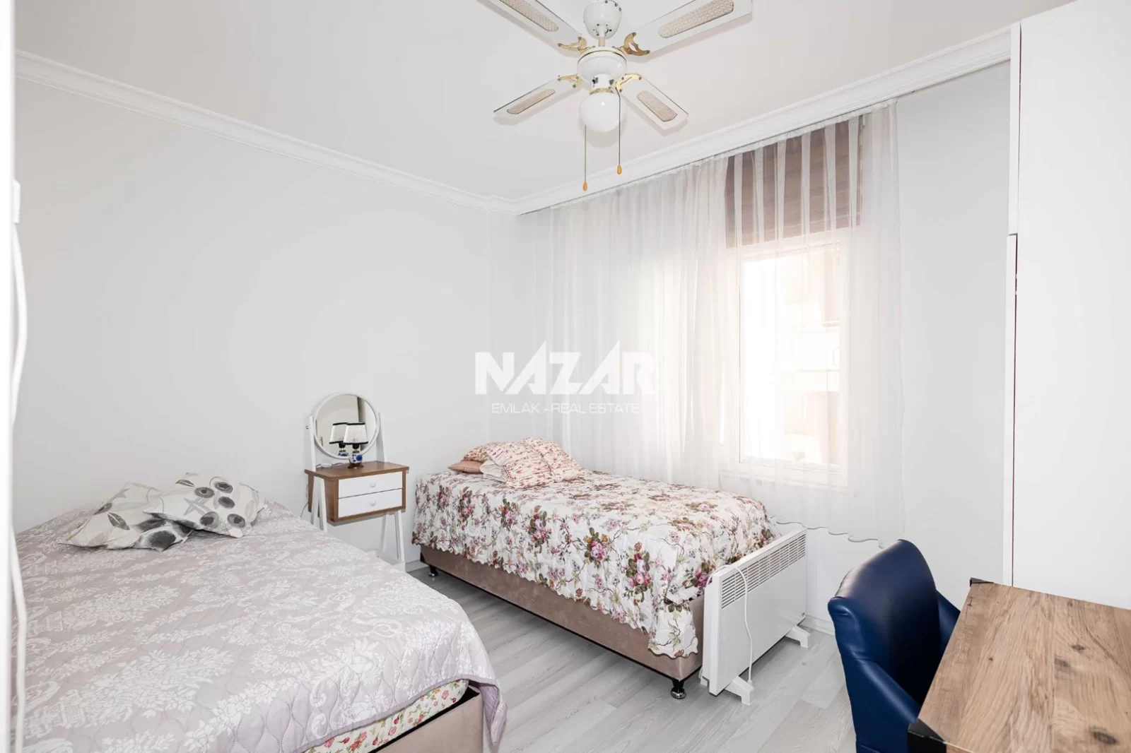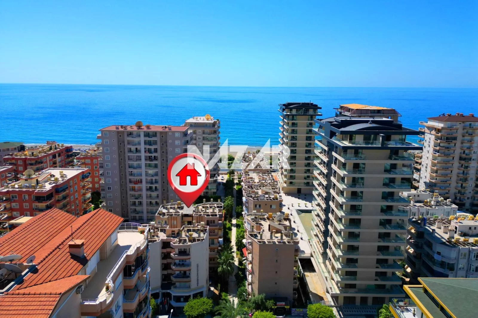 Die Wohnung liegt in der Nähe von Supermärkten, Restaurants und Einkaufszentren und ist nur 1 km vom Meer entfernt. Diese Wohnung können Sie über Nazar Emlak erreichen.