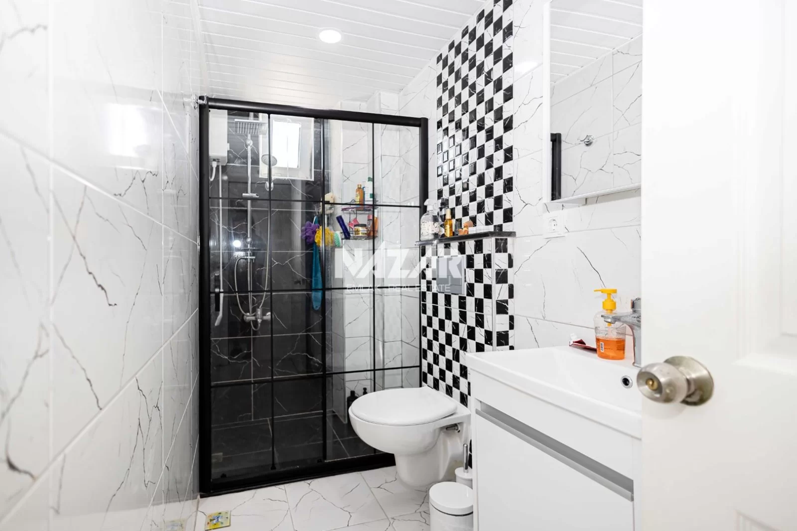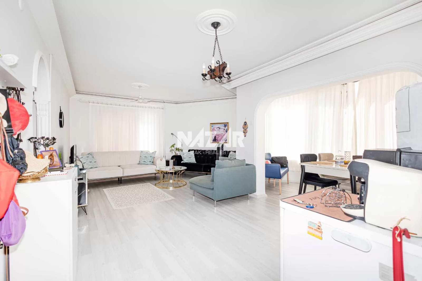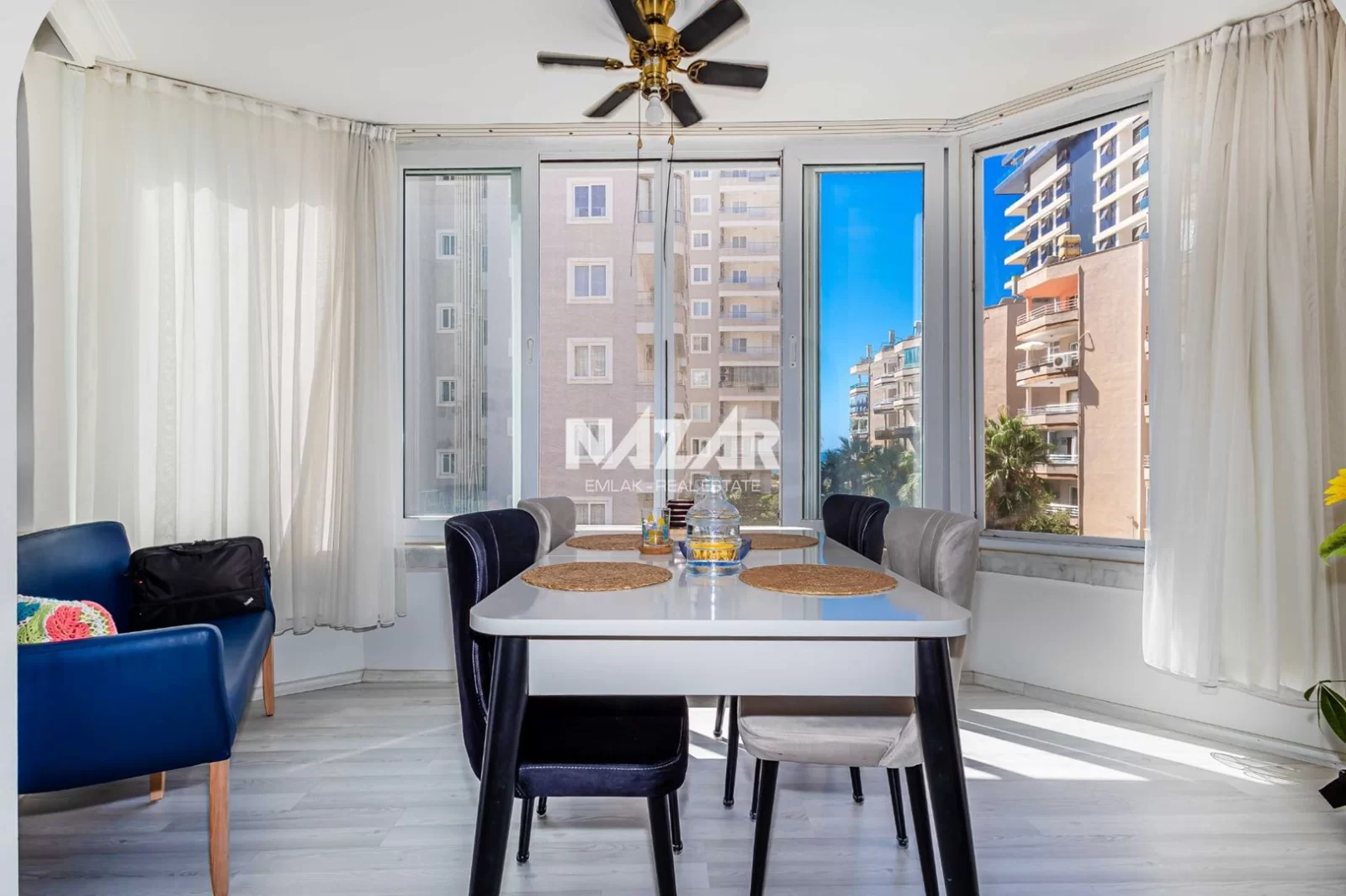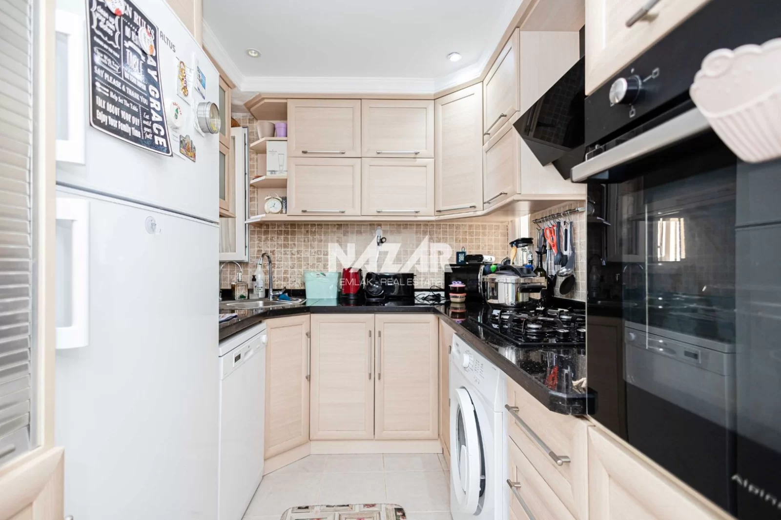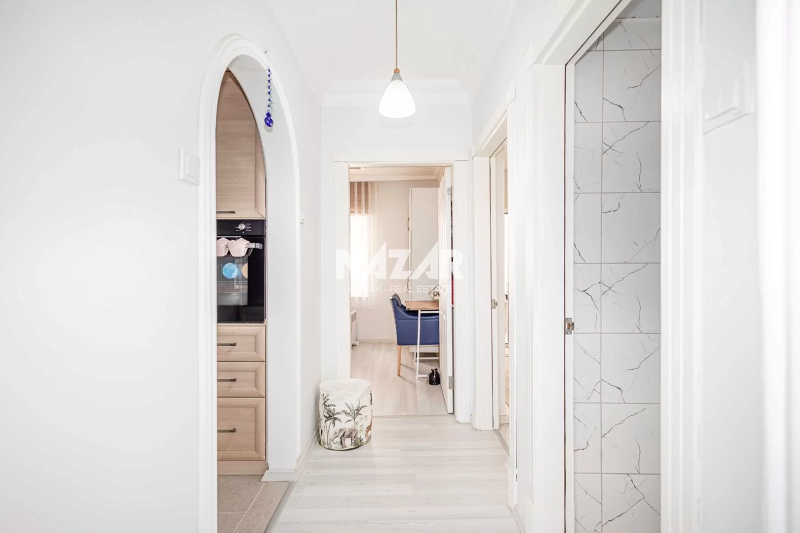 Die Wohnung liegt in der Nähe von Supermärkten, Restaurants und Einkaufszentren und ist nur 1 km vom Meer entfernt. Diese Wohnung können Sie über Nazar Emlak erreichen.