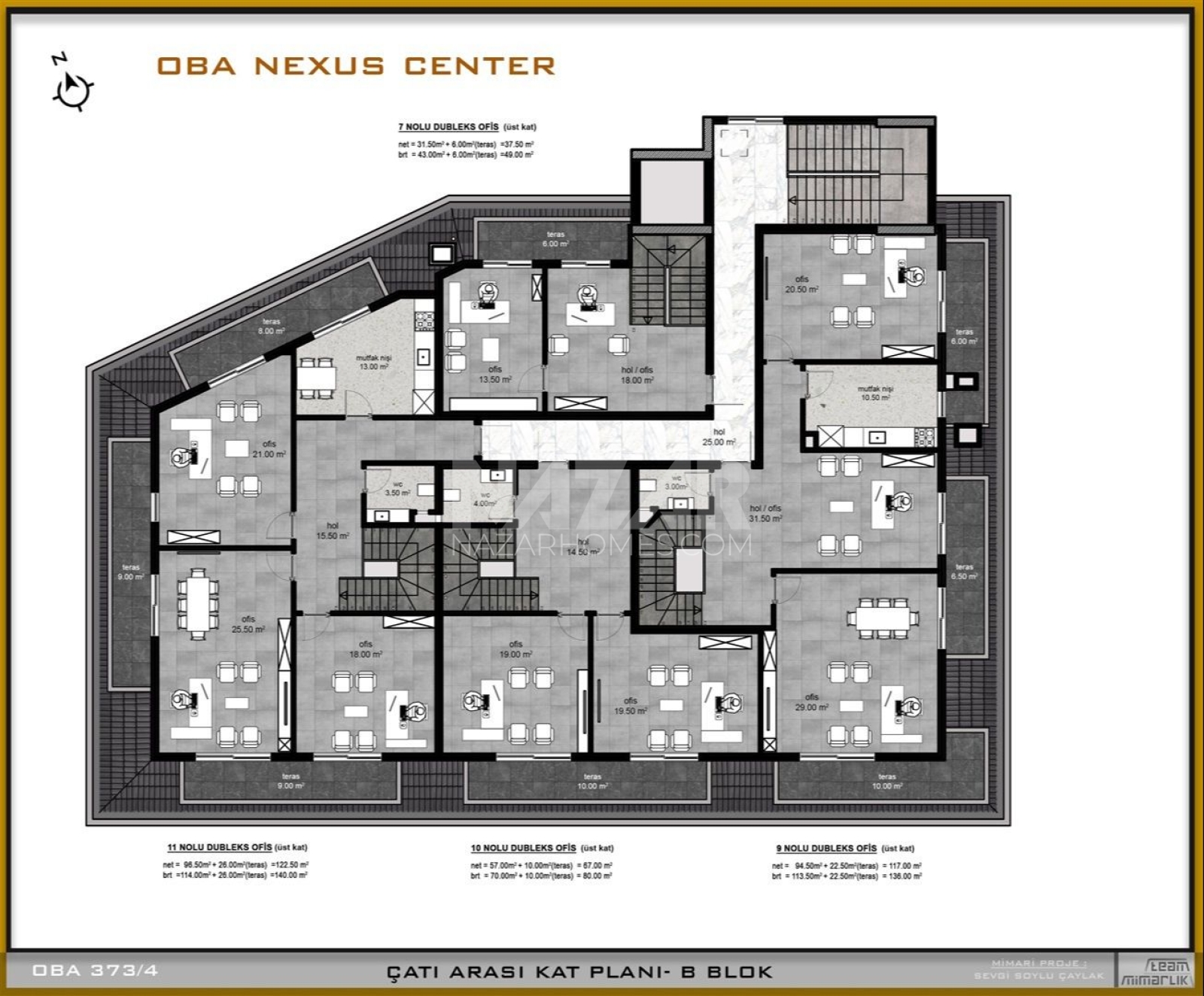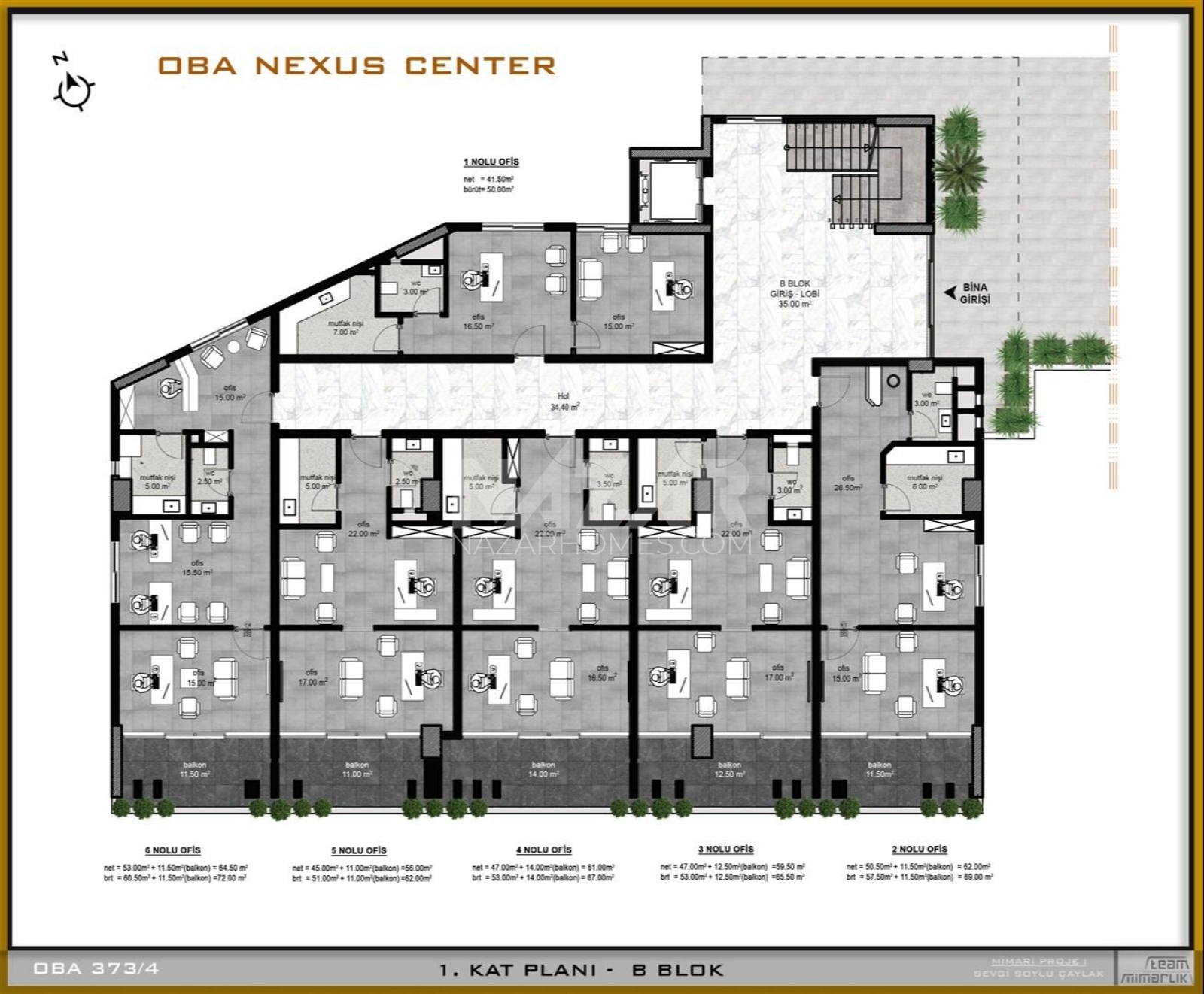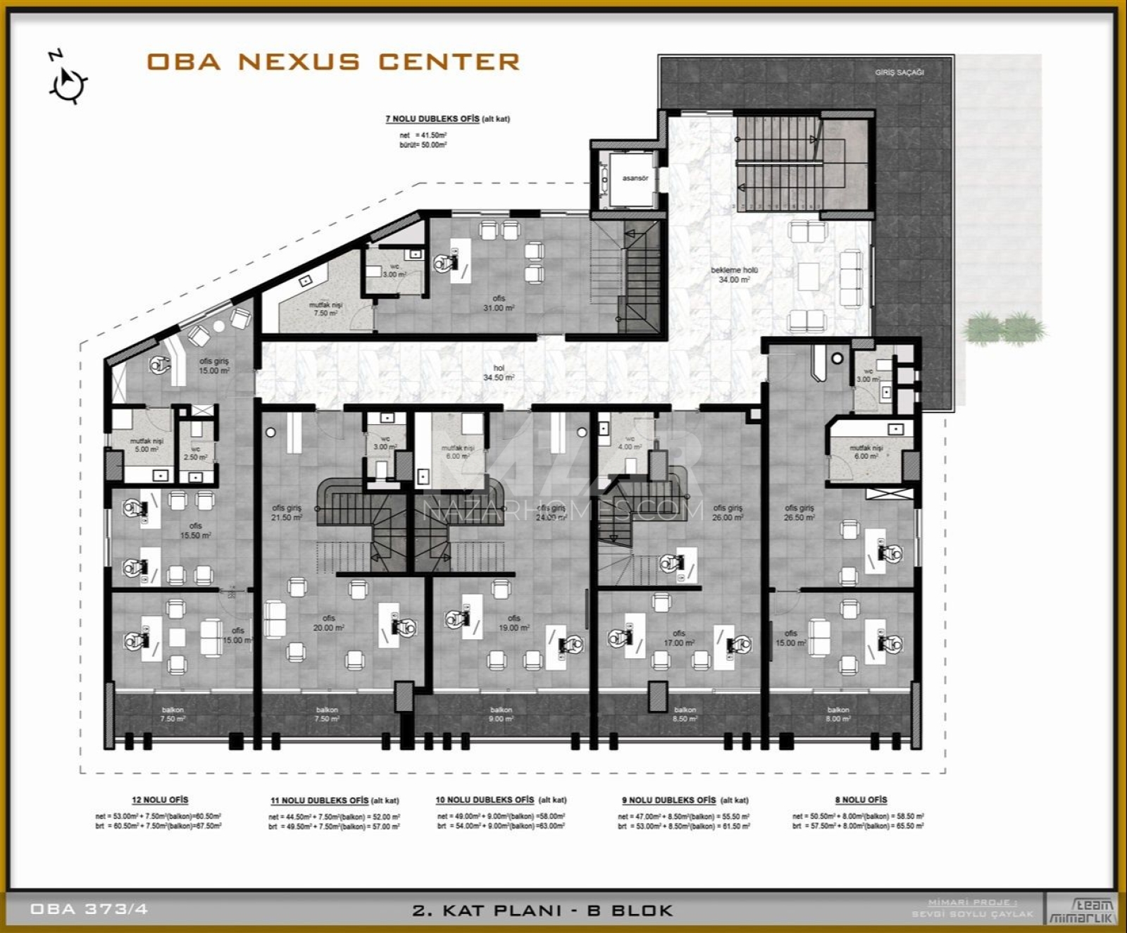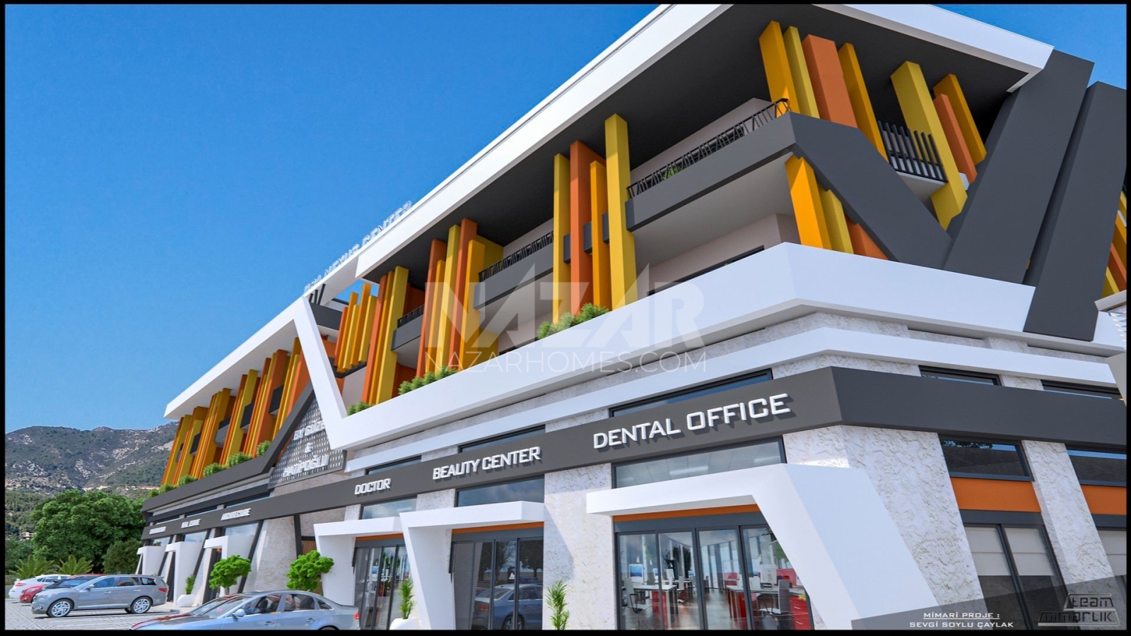 2Das neue Projekt in Alanya Oba Mahallesi, an der neuen Straße Antalya-Mersin, wurde auf einem 3.001 m² großen Grundstück errichtet und umfasst 3 Ladenlokale und 12 Büros. Die Büros bieten verschiedene Optionen von 63 m² bis 245 m², während die Geschäfte zwischen 350 und 400 m² groß sind. Mit seiner modernen Architektur und seiner zentralen Lage ist es sowohl für Investitionen als auch für das Geschäftsleben eine vorteilhafte Wahl.
